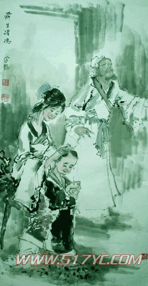 当然,人非草木,孰能无情。一天,舜在田里耕作,抬头看见一只母鸟带着几只小鸟在地边觅食,啄到一条虫子,母鸟自己舍不得吃,衔着喂了可爱的小鸟。这充满骨肉情爱的生灵,使舜看着看着,不由落下几滴酸泪。舜想着自己幼年丧母,受到继母百般虐待,父亲又如此糊涂无情,兄弟象竟那样刁顽,自己孤苦伶仃,不禁感慨万千。于是他一面弹奏五弦琴,一面唱着抒发自己的歌: